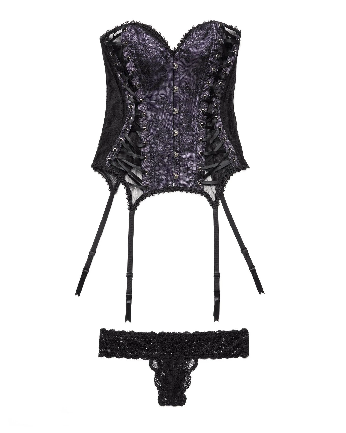 Busk front and lace-up back closures