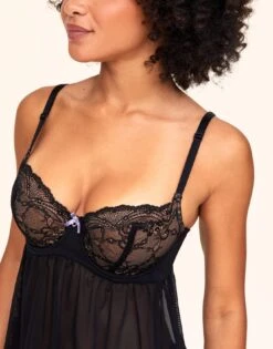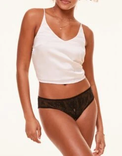 Meet your new go-to flirty and fun crotchless lace bikini panty! The Camylla style in black features a figure flattering cut with a pretty lace front and open back. Add a little extra spice to your lingerie collection with this must-have style. (Available in sizes XS-XL.)