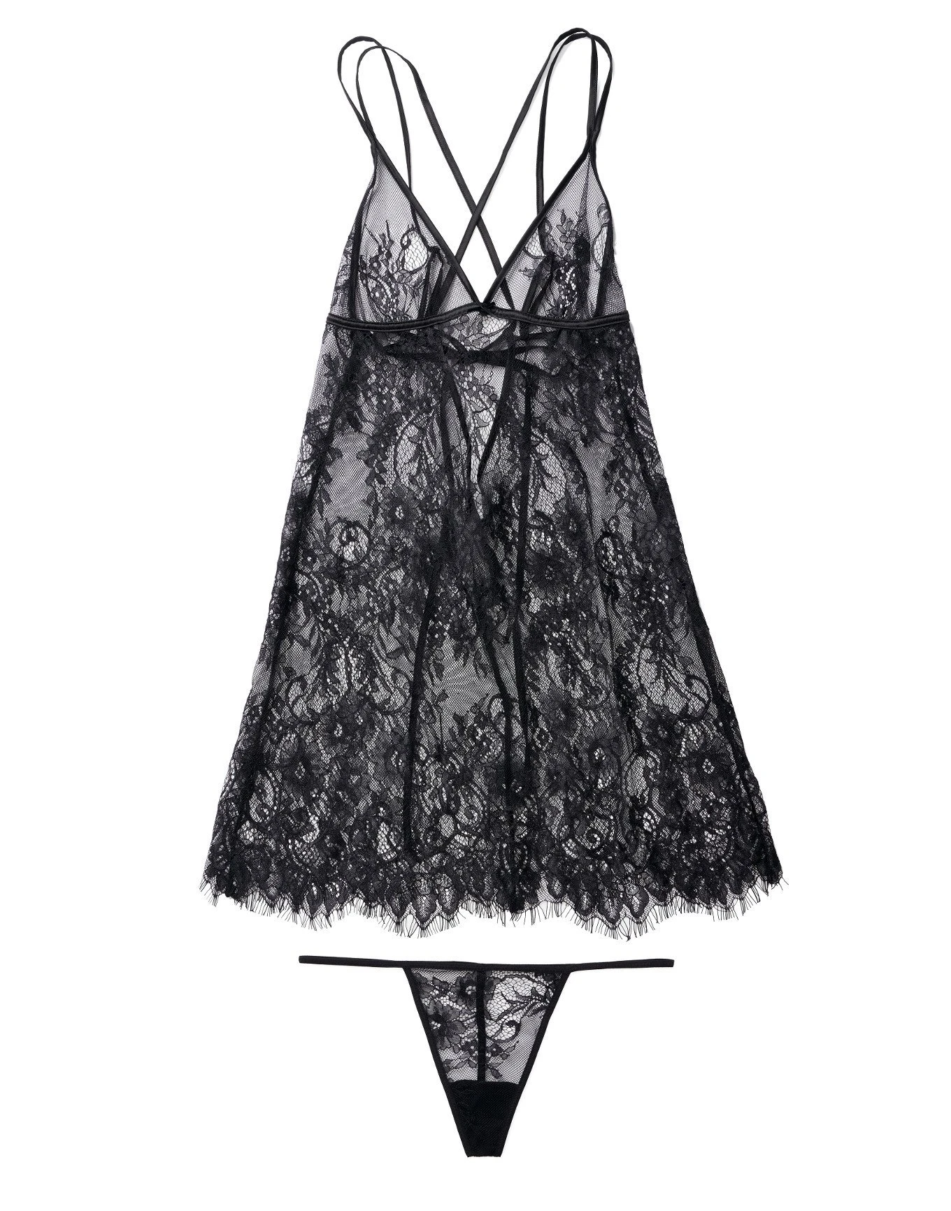 You + new lingerie are totally made for each other… Make hearts race in this little sheer black babydoll, featuring floral chantilly lace and a strappy open-back feature. Perfect for enhancing your figure, Leith comes with a matching G-string to complete your sexy yet classy look!