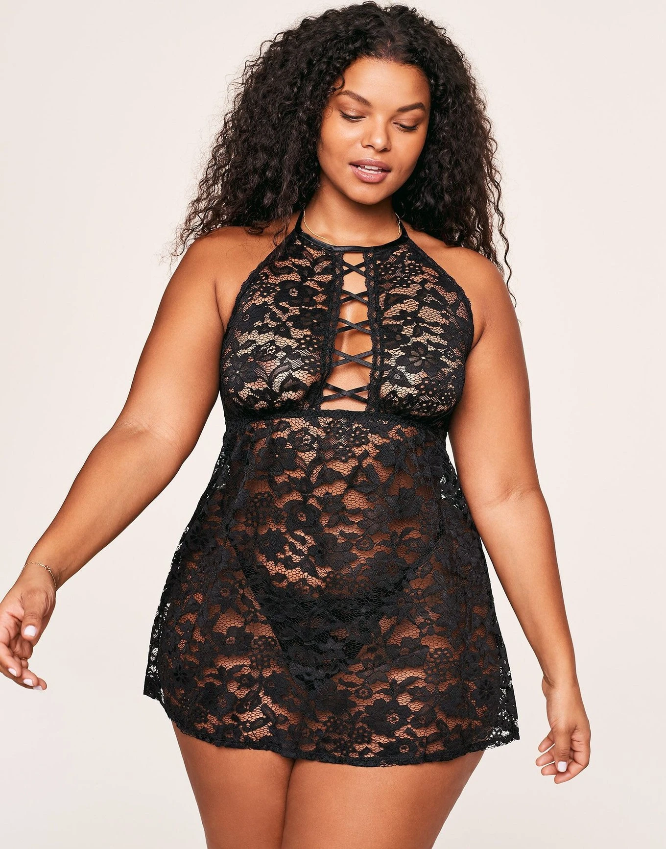 Now you can wear a babydoll without looking like a babydoll! The black lace Loraina is here. Slip into this unlined babydoll featuring a cool criss-cross detail down the front. Layer it well and wear it out or keep it light and wear it to bed!
